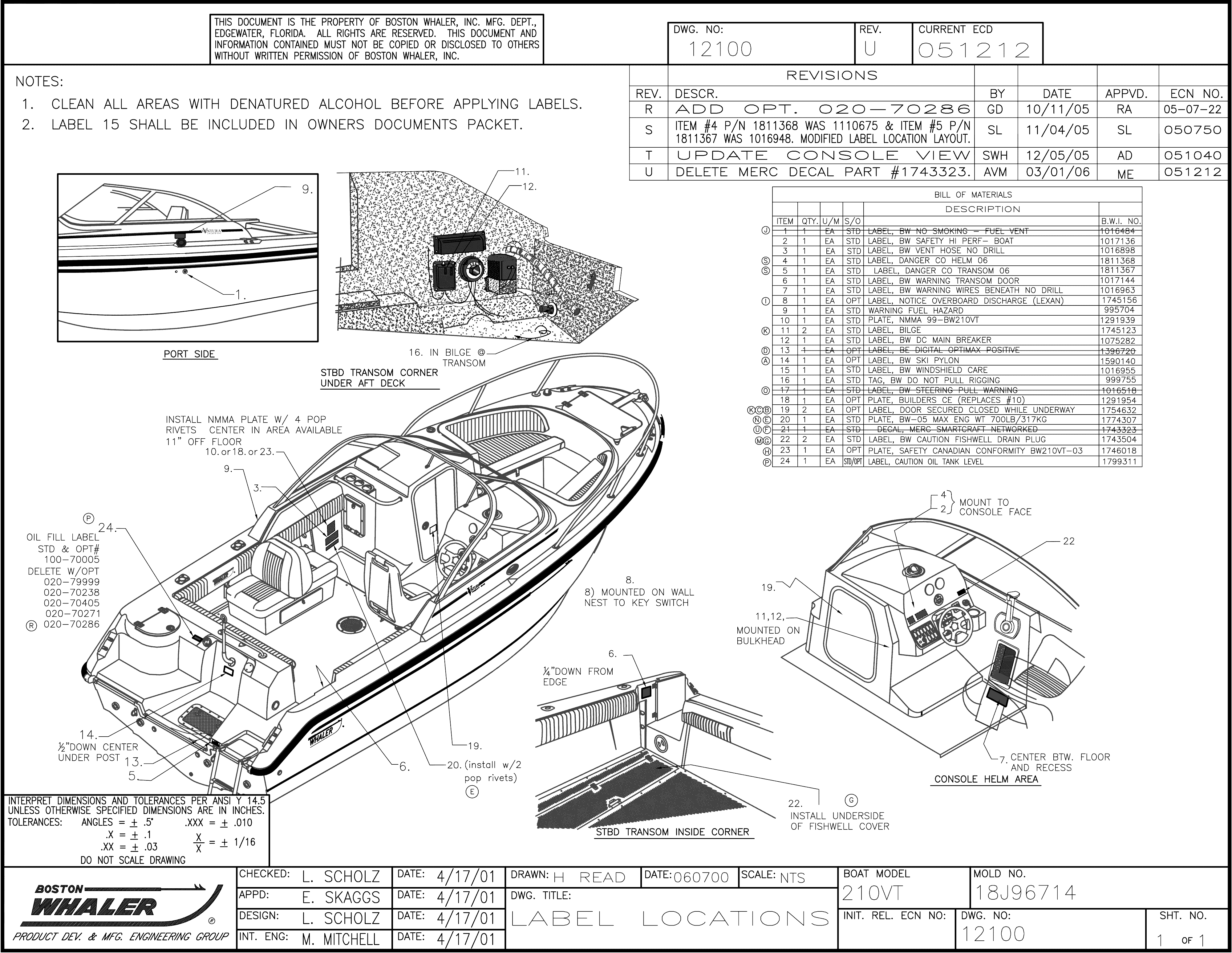 Boston Whaler 210 Ventura – Decals, Labels & Components