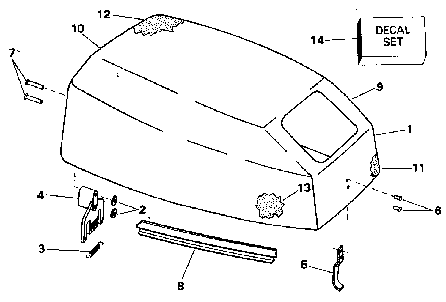 21 0209355 APPLIQUE, Motor cover front. USED ON 75 MODELS MODELS WITH "J" SERIAL NUMBER PREFIX