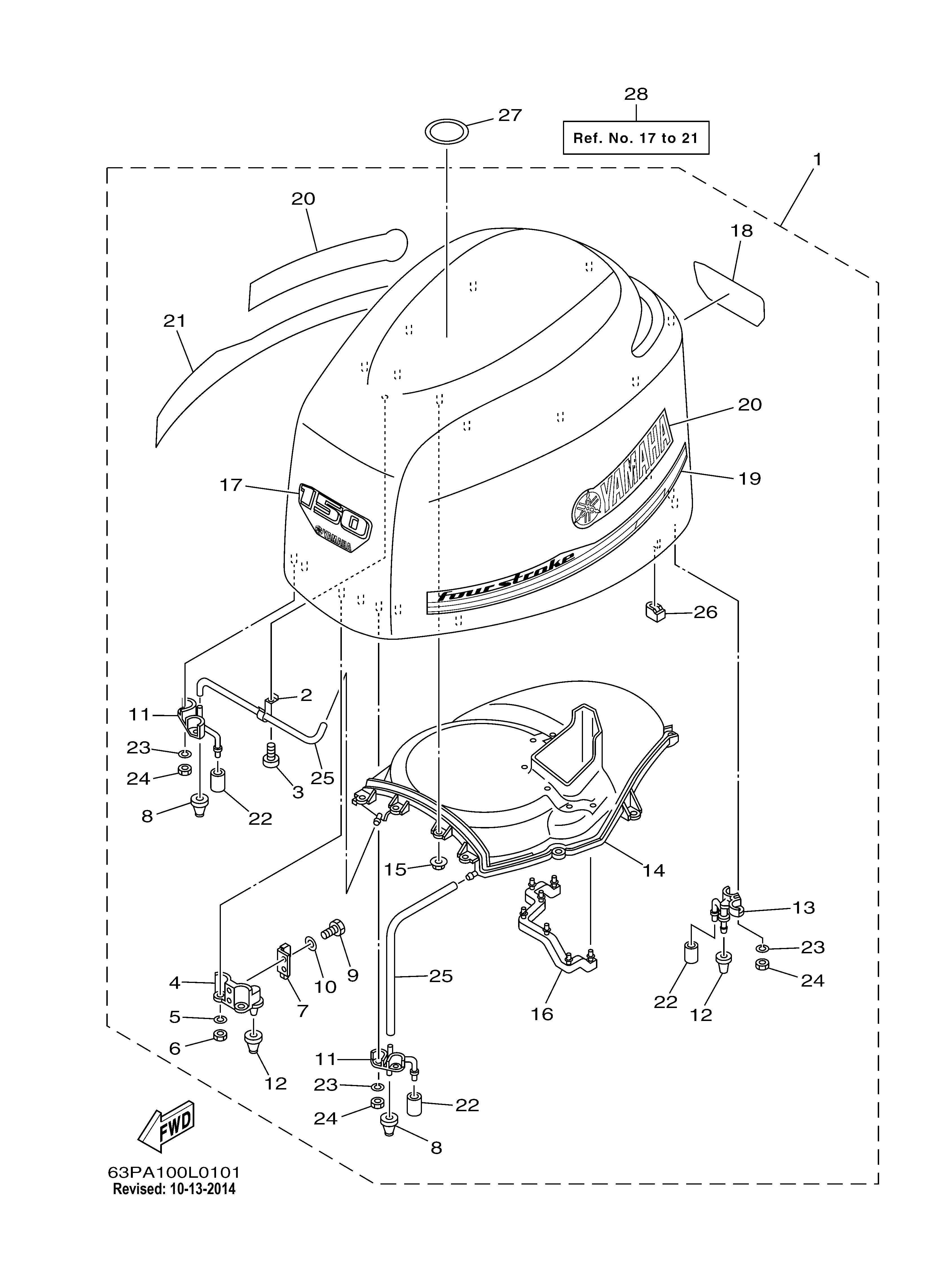 Diagram: Top Cowling — Ref. diagram code 63PA100L0101 (Revised 10-13-2014).